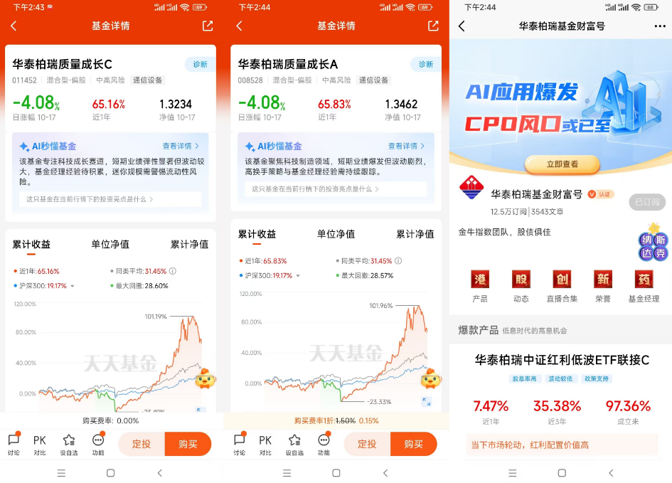 华泰柏瑞质量成长C基金通过专注于AI财产链的环节环节和新消费范畴。