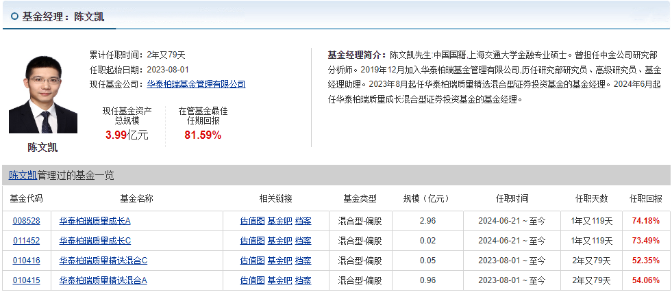 华泰柏瑞质量成长C(011452)基金的基金司理陈文凯,沉点关心的是芯片、硬件等环节手艺的研发以及相关范畴的立异!