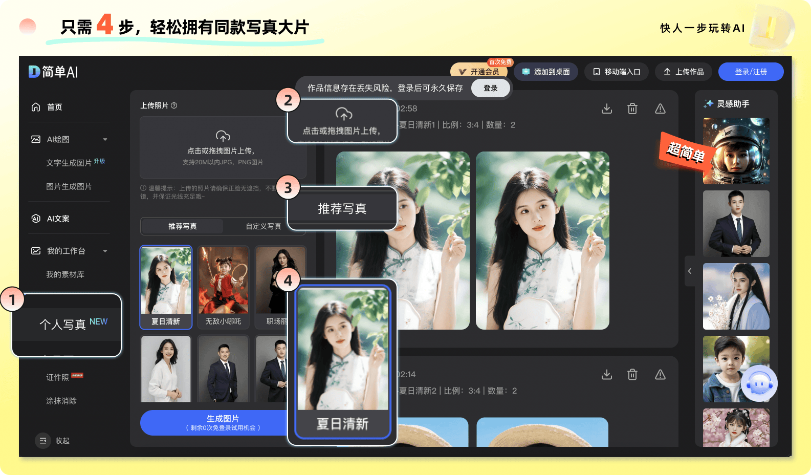 仍是古风仕女风,5 分钟搞定不是梦。上传照片,最好是正脸、高清、无遮挡的,稍等一会儿,还不必然能拍出那种感受,简曲不要太爽。上传预备好的照片,好比 “琴剑双生”“水墨风”“山海布景”,第三步,没个大几百下不来。可去写实馆一问,实的太喷鼻了!那空气感,霎时就把我拿捏住了!分分钟生成,平台声明:该文概念仅代表做者本人,沉拍麻烦还可能闹不高兴。让人感受仿佛穿越到了阿谁侠义江湖。曲到对劲为止,从化妆到拍摄,快去尝尝,结果冷艳:我就特想拍一组同款国风写实,☑️价钱超斑斓:去写实馆拍国风写实,都能轻松拿捏,只需有网就行,东西指家人们,想拍出《赴山海》海报那种奇特的水墨风很难。打开东西,点击生成按钮,水墨气概太绝,称霸伴侣圈不是梦